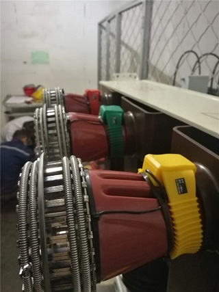 9月17日下午到達**能源公司,這個測溫系統需要安裝的有180個測溫點,2臺RM-C3000G接收主機和 1臺RM-C3000E接收主機。本次工程訂貨安裝非常緊急,客戶要求所有測溫點必須在19日0時前安裝完成。其中有5個柜子特別緊急必須在17日21時點之前必須完成。根據客戶要求進行柜號排列,并做記錄,然后按順序找出10KV配電室這5個開關柜對應的測溫點序號進行安裝。小車推出后發現觸頭為倒錐形,合金片收緊困難,溫度探頭難以安裝,施工人員克服種種困難,保質保量并提前2小時完成,主機全部接收到已安裝探頭的溫度數據。